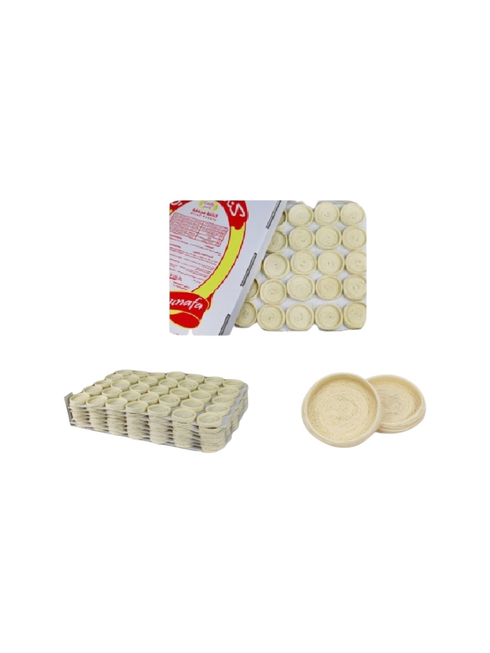 عبوة جامبو اقتصادية تحتوي على 280 قطعة من أساور الكنافة الملكي، مثالية للحشو الفاخر والتقديم الاحترافي – Economic Jumbo pack containing 280 pcs of Royal Bulbul Nest, perfect for premium filling and professional presentation.