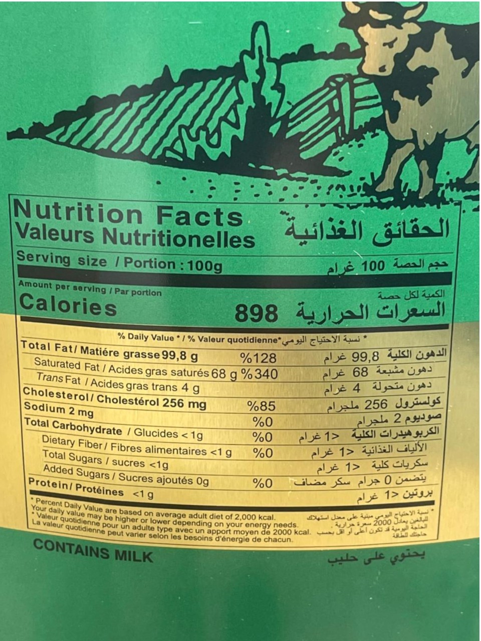 For every chef seeking international excellence, we present “L’vache de Paris” French ghee. This ghee is among the most prestigious choices for making authentic French croissants, premium petit fours, and Oriental sweets that require a very rich buttery taste. It features a high smoke point and perfect texture, making it the top choice for hotels and major pastry shops. With its precise weight (20.43kg), it provides production sustainability while ensuring consistent quality and taste.